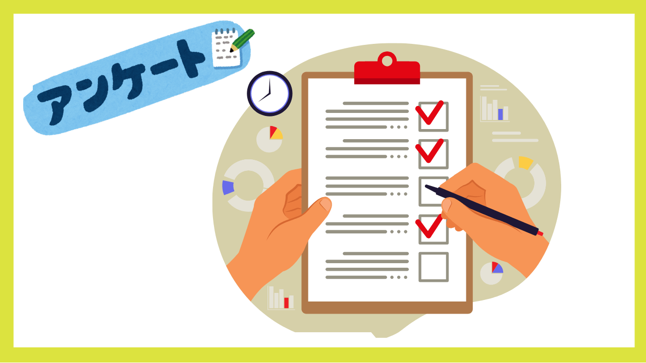 アンケートとは、対象となる人々に質問を行い、その回答を収集・分析する調査方法のことです。
